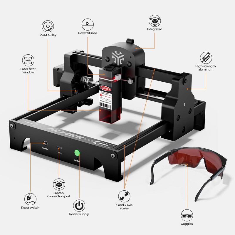 Acmer S1 Laser Engraver and Cutter Machine, 3.5W (3500mW) for Wood, Acrylic, Leather, Plastic - 130x130mm Compact Engraving Area, DIY Crafts & Art Projects, Precision Mini Engraving Framework Design