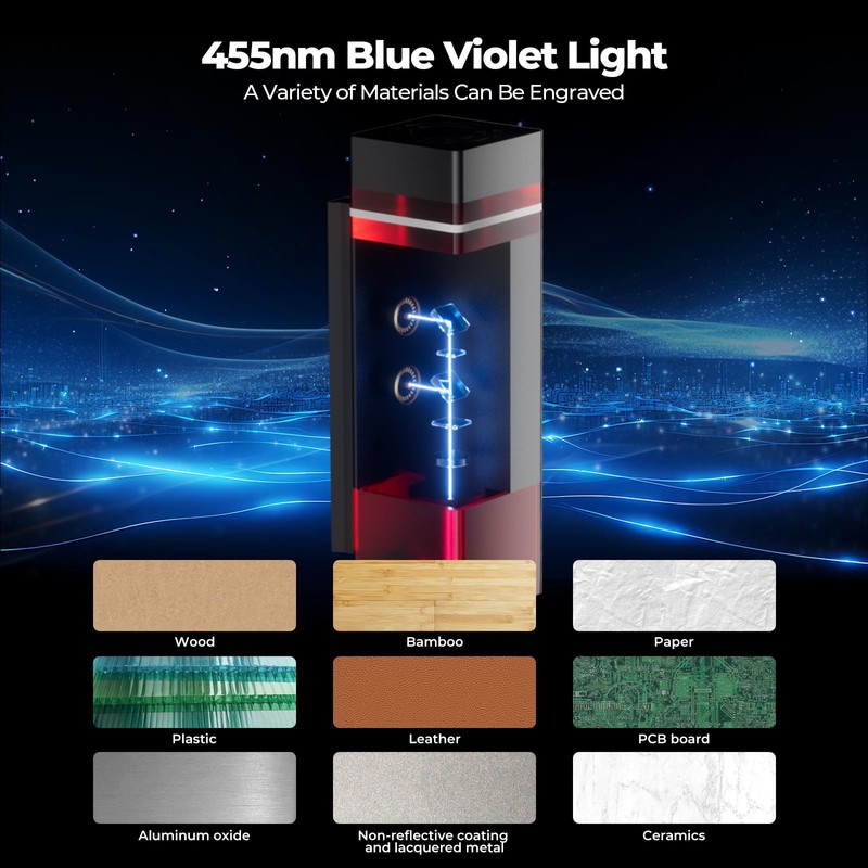 - High-Precision Laser Engraving and Cutting: Acmer S1 laser engraver machine with 3500mW diode laser power, 36W machine output, 455±5nm wavelength, and 2mm focal length for ultra-fine accuracy. Achieve up to 10,000mm/min engraving speed and 0.01mm repeatable positioning accuracy—perfect for detailed, vivid engraving and cutting on various materials.