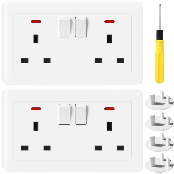 Acmerota Double Switched Converter Power Scoket 13A Double Plug Socket Switched Wall Socket Switched Single to Double Socket Converter,Easy to Install