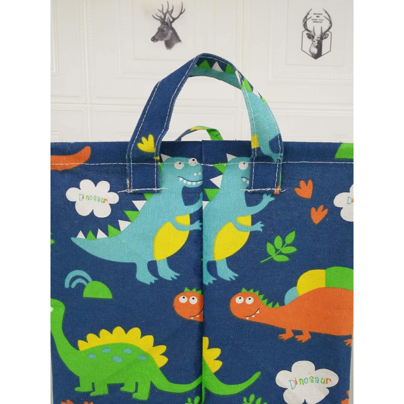 ACMUUNI REC Canvas Clothes Basket Laundry Hamper with Handles Waterproof Cotton Storage Organizer Perfect for Kids Boys Girls Toys Nursery Gift Basket (REC blue dinosaur)
