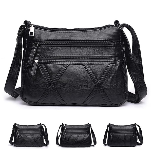 ACNCN Soft PU Leather Crossbody Shoulder Bag: Stylish Women's Multi-Pocket Messenger Handbag(Style 1- Black)