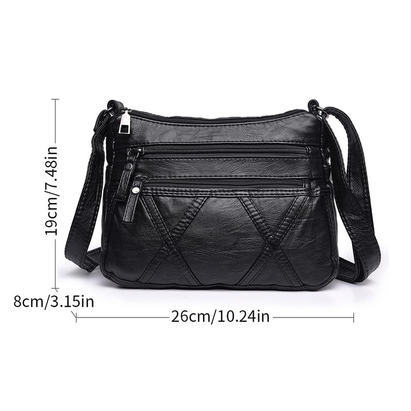 ACNCN Soft PU Leather Crossbody Shoulder Bag: Stylish Women's Multi-Pocket Messenger Handbag(Style 1- Black)