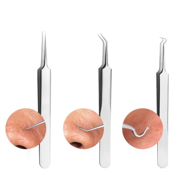 Acne & Blemish Remover Sebum Extractor Tool Slanted Tweezers 13ea