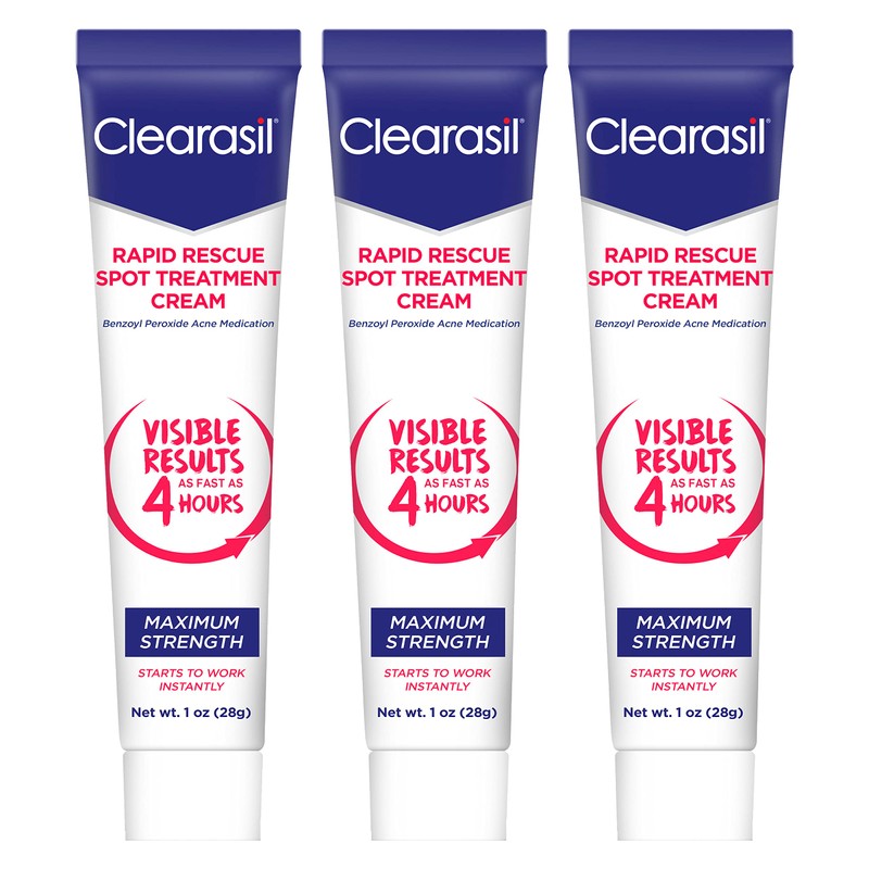Clearasil Rapid Rescue Spot Treatment Cream with Benzoyl Peroxide Acne Medication for Acne Relief, 1 Ounce (Pack of 3)