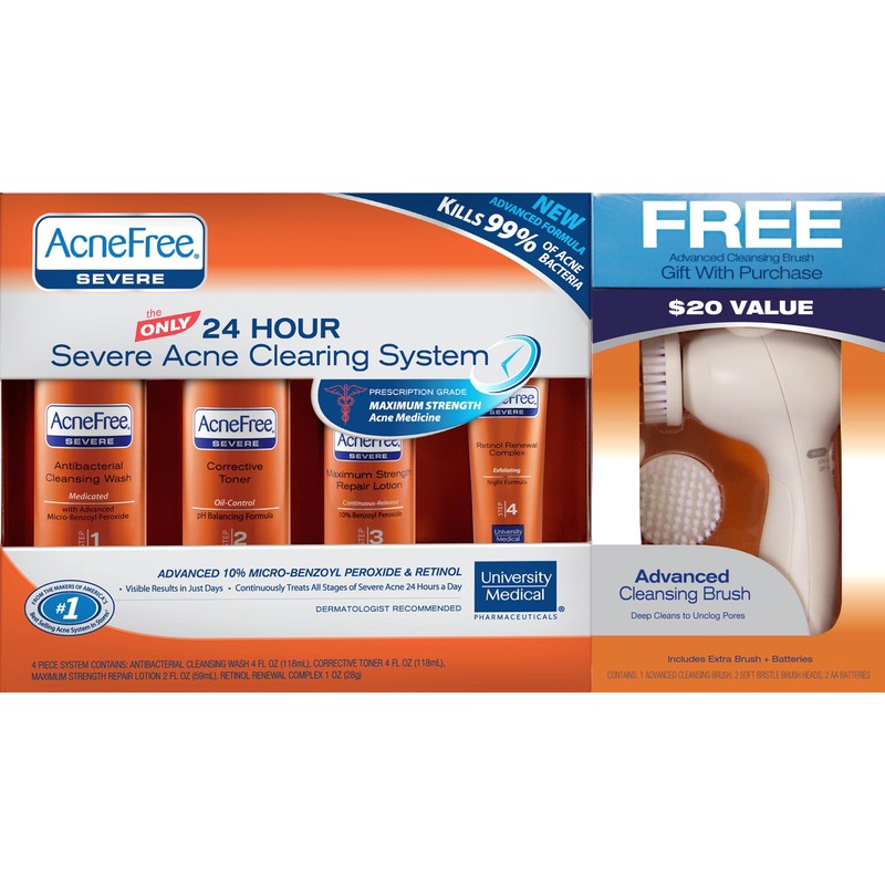 Acnefree 24 Hour Severe Acne Clearing System with Free Cleansing Brush, 11.52 Ounce