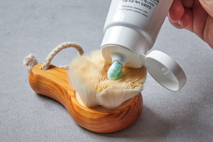 엄지손톱 크기 정도를 덜어 물기가 있는 얼굴에 거품을 내어 문지른 후 미온수로 깨끗하게 씻어 냅니다.