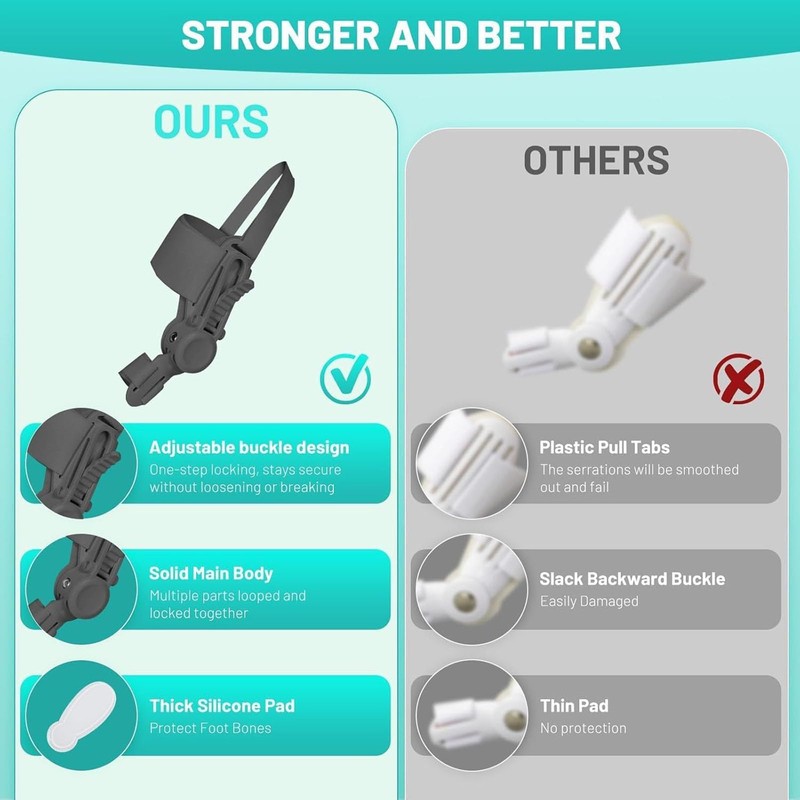 - New Upgraded Bunion Corrector:This bunion toe corrector features a 180° range of adjustment to accommodate your bunion angle, helping to minimize friction and absorb pressure to relieve bunion pain.This flexibility ensures comfort and convenience throughout the correction process, allowing you to correct the position of your foot whenever and wherever you want.