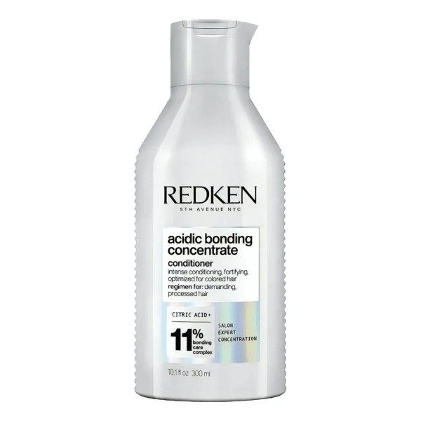- El acondicionador Redken Acidic Bonding Concentrate es la fórmula más concentrada de Redken para todo tipo de cabellos y texturas, proporciona un acondicionamiento intenso, reduce la rotura y protege el color. Contiene ácido cítrico, un alfahidroxiácido dentro de nuestro complejo de cuidado concentrado que acondiciona para ayudar a proteger los enlaces débiles y ayuda a mejorar la fuerza y la resistencia del cabello después de una decoloración o servicios de color. Este acondicionador con pH equilibrado está específicamente formulado con un pH ácido para ayudar a defenderse de los posibles efectos negativos que pueden causar la coloración, el aclarado y el peinado con calor. ¿El resultado? Un cabello que se ve y se siente saludable. Beneficios clave: