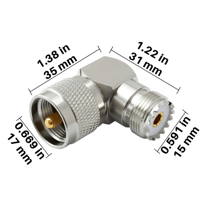 - 【Package Content】: 2 pieces UHF PL259 male to UHF female SO239 right angle adapters. If you have any questions, we'll be happy to serve you,We will reply to you within 24 hours.