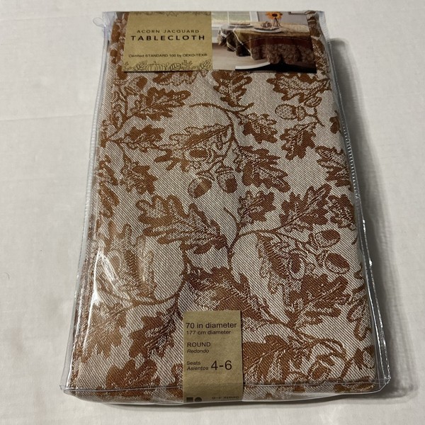 Acorn Jacquard Autumn Fall Tablecloth 70” Round tablecloth. Condition is New with tags.