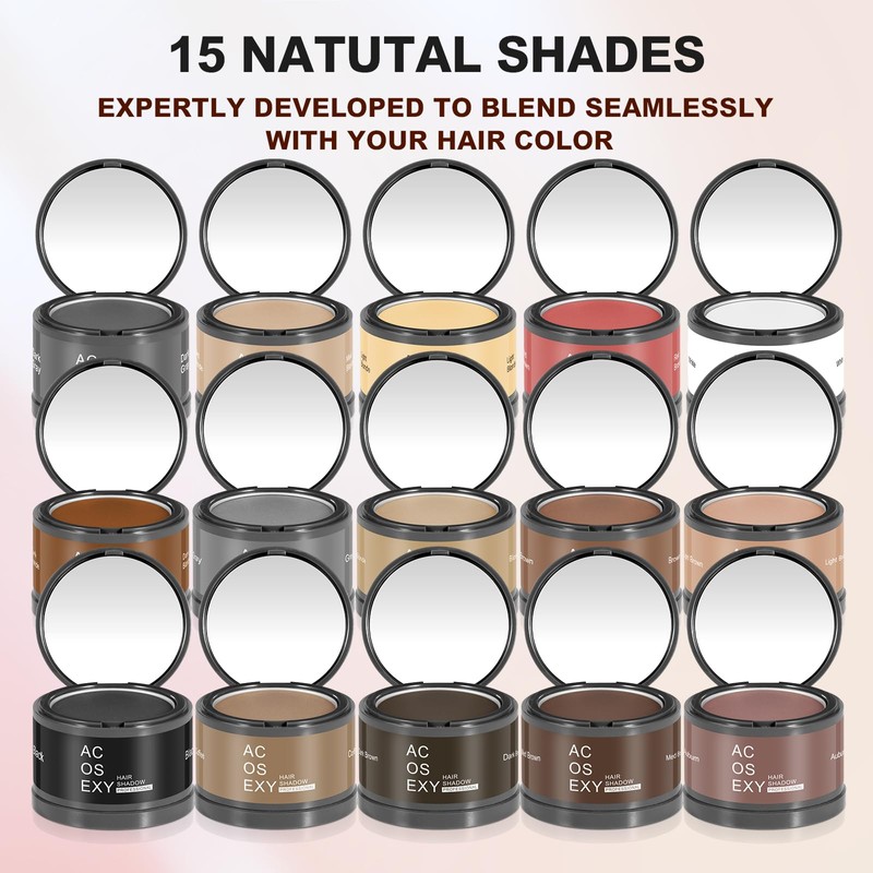 - 2.Acosexy Hairline Shadow Powder Widely Used- Keep your hair looking vibrant all day long with our hairline color powder. Our formula is sweatproof, windproof, and provides strong coloring.available in Multiple colors,No Sticky, Gunky Feel: While root cover up spray (hair color spray) can be messy to apply and leave your hair feeling greasy, gunked up,it can be used for Women,Men Girls,boys ,Child.