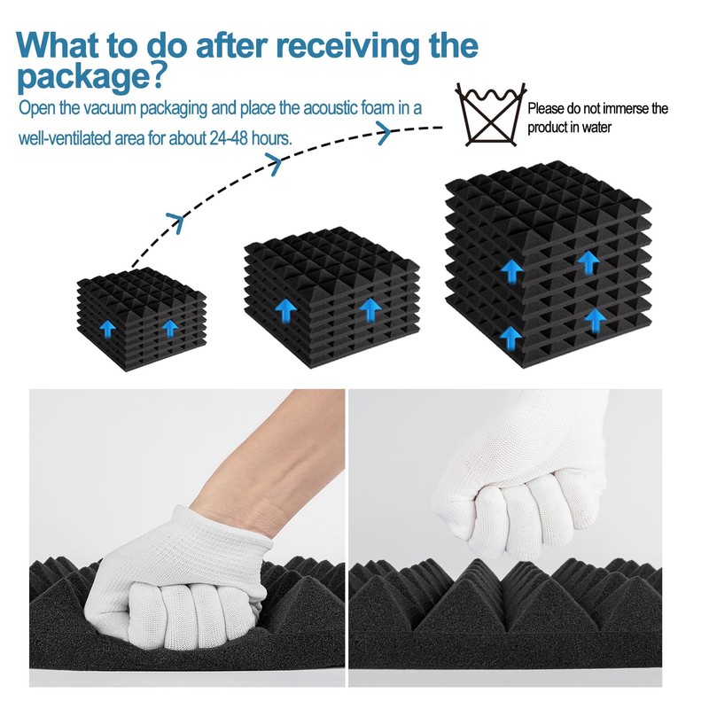- Quick Recovery - Open the vacuum packaging and place the acoustic foam in a well-ventilated area for about 24-48 hours.