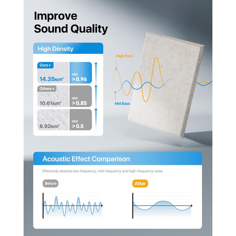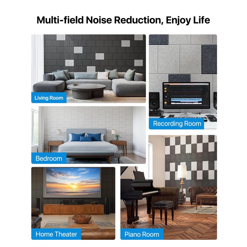 - Wide Application: Acoustic panels are suitable for various spaces, including homes, offices, recording studios, live broadcasts, and conference rooms; improve the acoustic environment and enhance sound quality and comfort