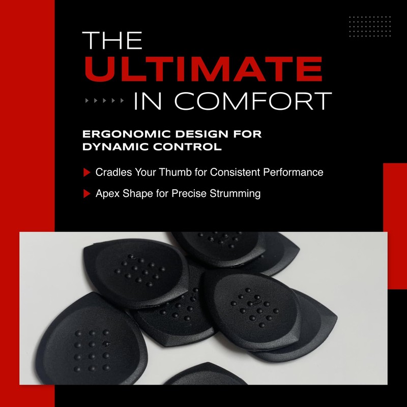 - ERGONOMIC DESIGN - This structured pick cradles the thumb for consistent dynamic control and effortless harmonics and the APEX DESIGN at the top features a broader shoulder and point for strumming