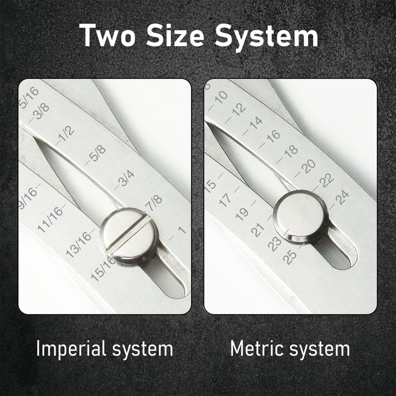 - Adjustable Opening & Double Scale Design: The thread size checker keychain is a versatile tool that can measure both Metric (8 - 25 mm) and SAE (5/16 - 1") bolt sizes. With an adjustable opening, it's easy to expand or reduce the measuring range. The distinct and precise size scale is clear and easy to read ?