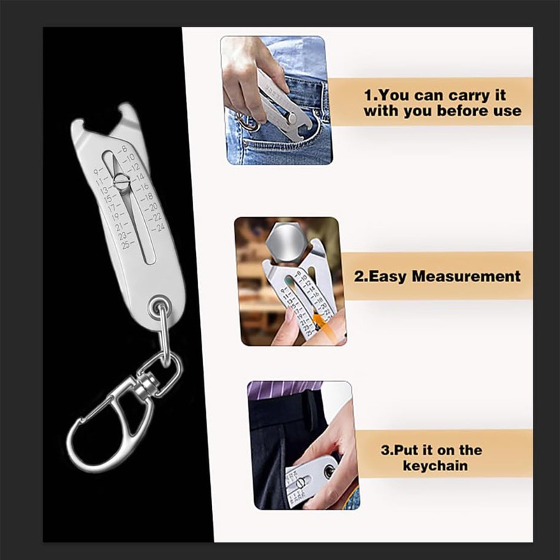 - Robust & Durable Materials: Made of stainless steel and aluminum alloy, this portable bolt size finder keychain gauge tool has a multi-layer polished surface. It's smooth, durable, and comes with a keychain for hanging on the belt, ensuring it's always within reach when needed