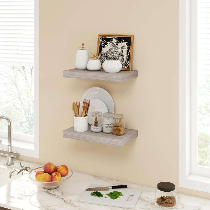 - [RUSTIC CHARM WITH CONTEMPORARY TOUCH]: These hollow-core 16 inch floating shelves seamlessly merge farmhouse elegance with modern aesthetics. Made from premium engineered wood, their rustic wood grain brings warmth and texture to any room. Arrange them side-by-side, staggered, or in a corner for a streamlined look that enhances both traditional and contemporary interiors.