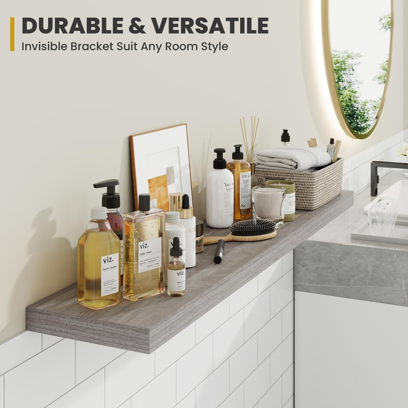 - [ROBUST & SECURE MOUNTING]: Equipped with a sturdy, hidden mounting bracket, these 16-inch floating shelves ensure solid support for your items. Designed for easy and secure installation, they come with all necessary hardware for a firm, wobble-free setup, allowing you to confidently display decor, photos, or functional items with style.