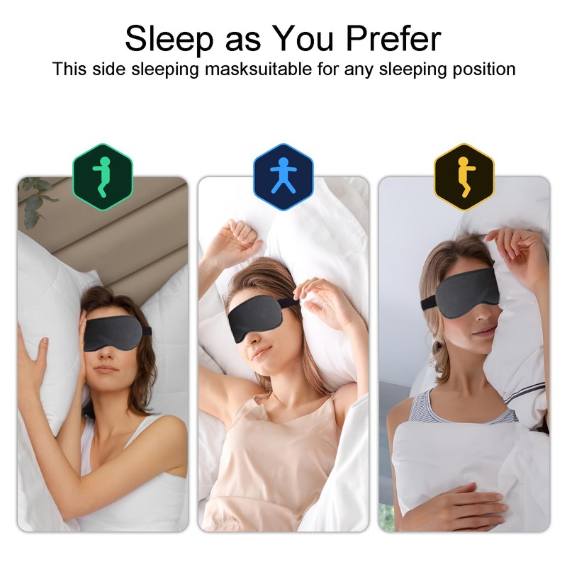 - 【Ideal for Side Sleepers】With uniquely angled, thinner sides at 15°, these masks fit snugly around your eyes and temples, alleviating pressure when sleeping on your side. They're equally suitable for back and stomach sleepers, minimizing movement during tossing and turning.