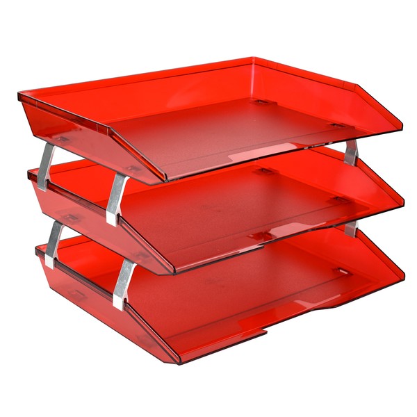 Acrimet Facility 3 Tier Letter Tray, Side Load, Letter Size/A4, Desktop File Organizer, Plastic (Clear Red Color)