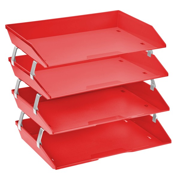 Acrimet Facility 4 Tier Letter Tray Side Load Plastic Desktop File Organizer (Solid Red Color)