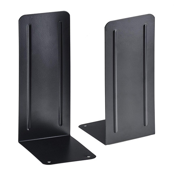 Acrimet Metal Bookends, Jumbo Size 9" H x 4" W x 4-1/2" D, Non-Skid Book Stand for Shelves, Heavy Duty Book Stopper, Black, 1 Pair