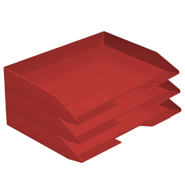 Acrimet Stackable Letter Tray 3 Tier Side Load Plastic Desktop File Organizer (Solid Red Color)