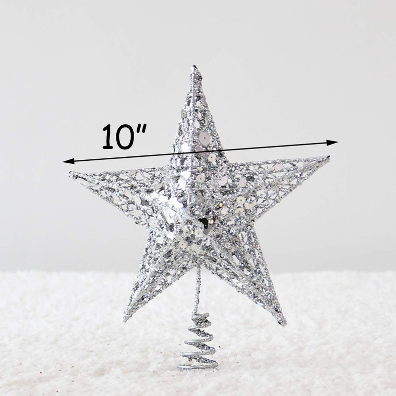- Topper Stars: Made of good quality metal, sturdy and durable, do not deform,With glitter on the surface, rust-proof,Wire spiral cone on the bottom to keep topper star standing on the treetop firmly.