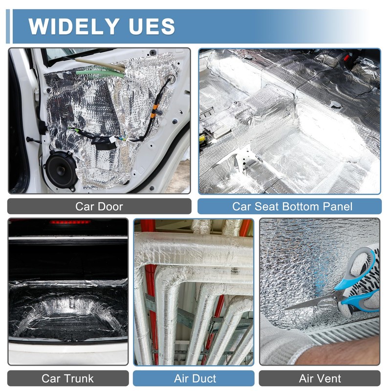 - Good Replacement: For Car, Boat and Golf Cart, such as hood, door, wheel arch, engine compartment, engine bays and body panels. Sound heat deadener insulation also fit for firewall, U type pipe, kitchen sink and computer case