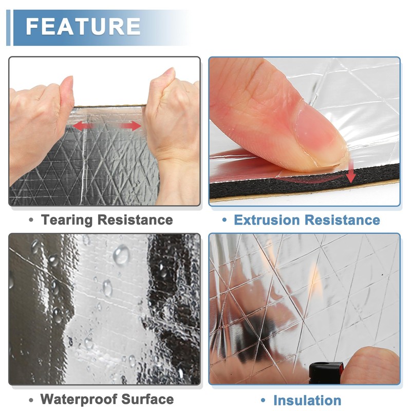 - Easy Installation: The sound dampening material comes in handy size which make it easier to cutting and installation. Automotive self adhesive insulation, every insulation pad is high temperature resistance. It also moistureproof and good for sealing against water.