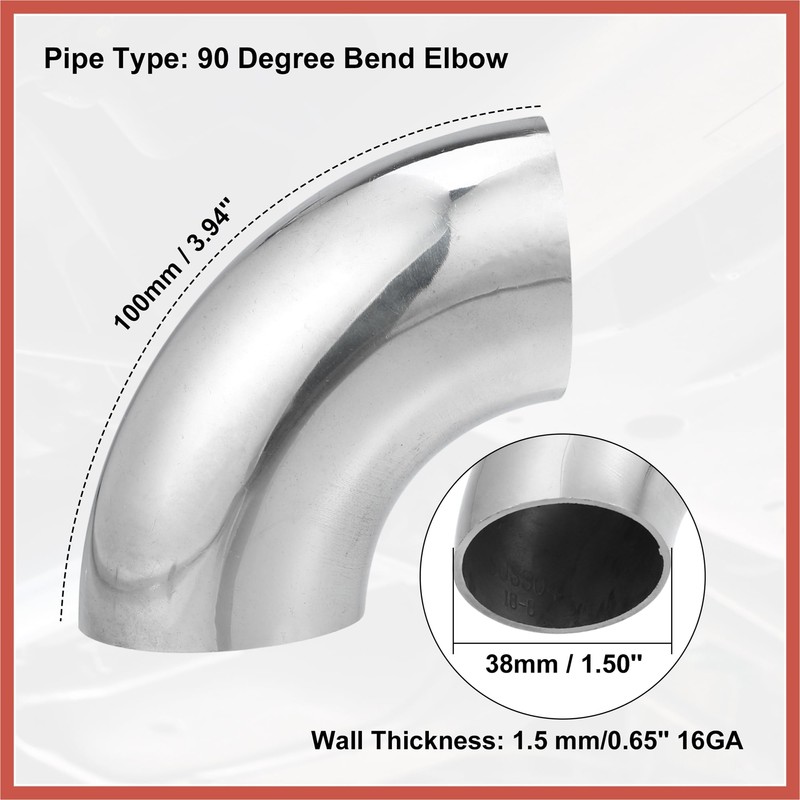 - Auto Parts: Pipe Specification: Pipe Type: 90 Degree Bend Elbow, Outer Diameter: 38mm / 1.50'', Back Arc Length: 100mm / 3.94'', Wall Thickness: 1.5 mm / 0.06''