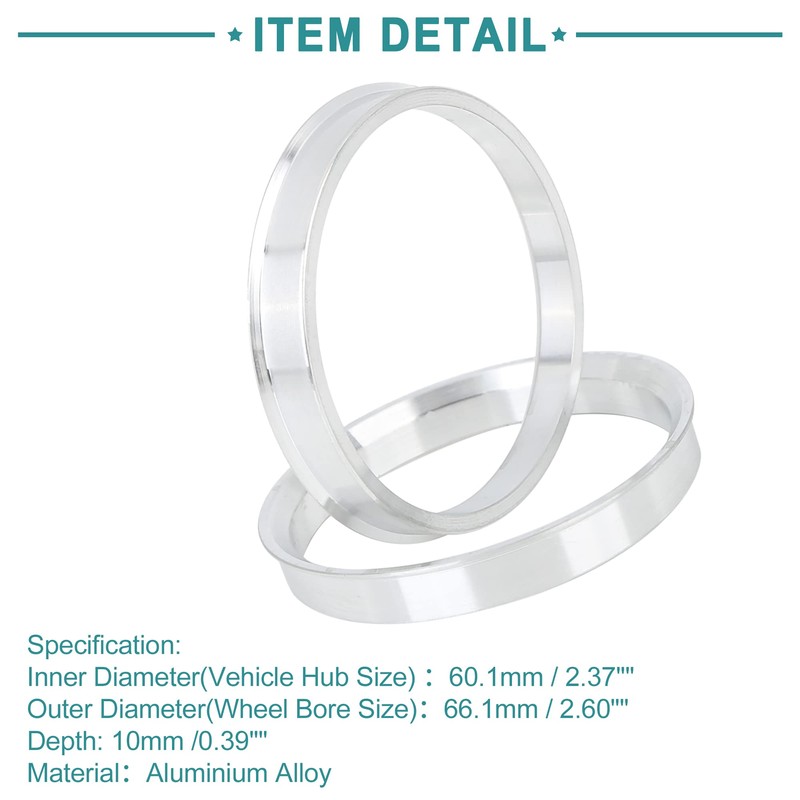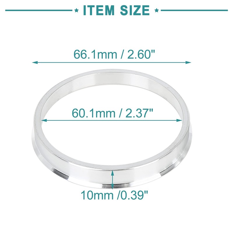 - 4 pcs Universal Alumiium Alloy Hubcentric Rings- Outside Diameter: 66.1mmHub Ring Inner Diameter: 60.1mm (Must match wheel center bore)