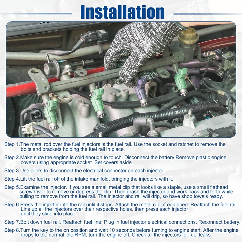 - Easy Installation: Fuel injectors directly affect the air/fuel ratio for the engine and new fuel injectors do require a new or updated tune. Professional installation is highly recommended. We suggest that you also check the other component of the engine before installation.