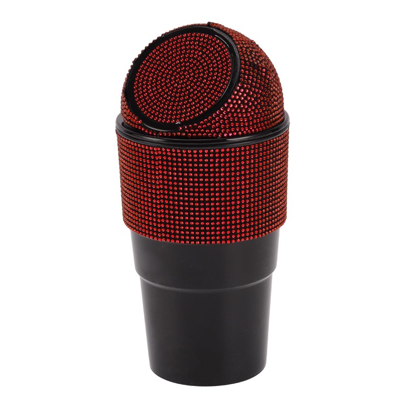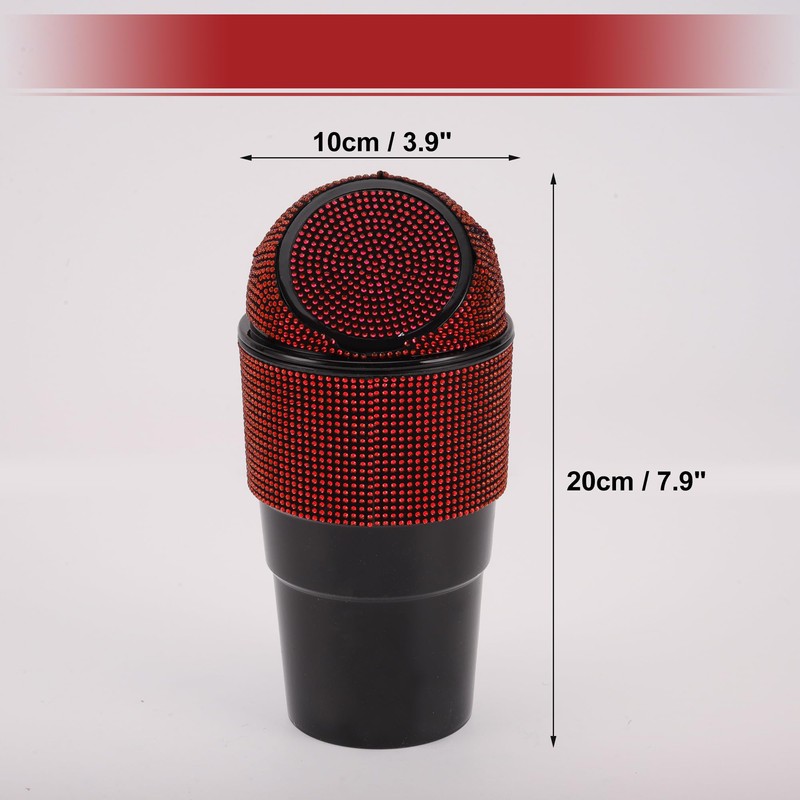 ACROPIX Car Trash Can Trash Bin Rhinestones Portable 3.9" Width 7.9" Height Red Black Rhinestone Plastic