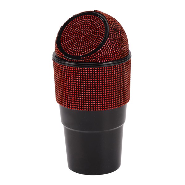 ACROPIX Car Trash Can Trash Bin Rhinestones Portable 3.9" Width 7.9" Height Red Black Rhinestone Plastic
