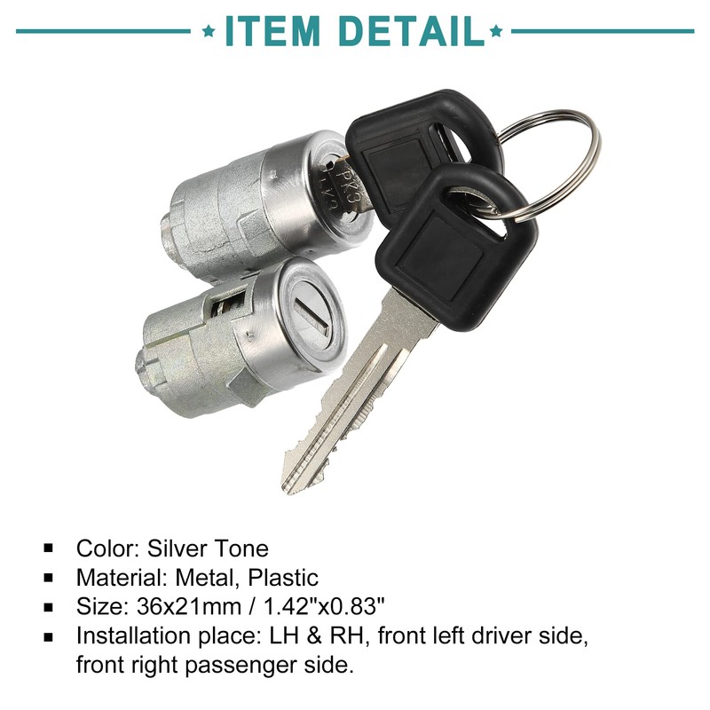 - Package Includes: 1 pc Left front driver side door lock cylinder, 1 pc Right front passenger side door lock cylinder, 2pcs keys, 2x Mounting hardwares.