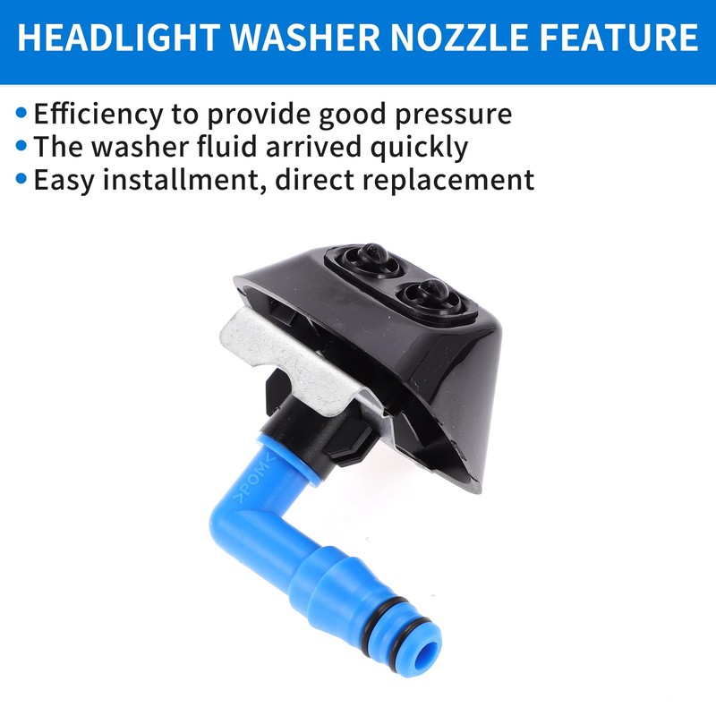 • Easy Installation:Located on Front Driver Side headlamp. Easy to install, replace the old or broken washer nozzle and insert the new headlamp washing nozzle.
