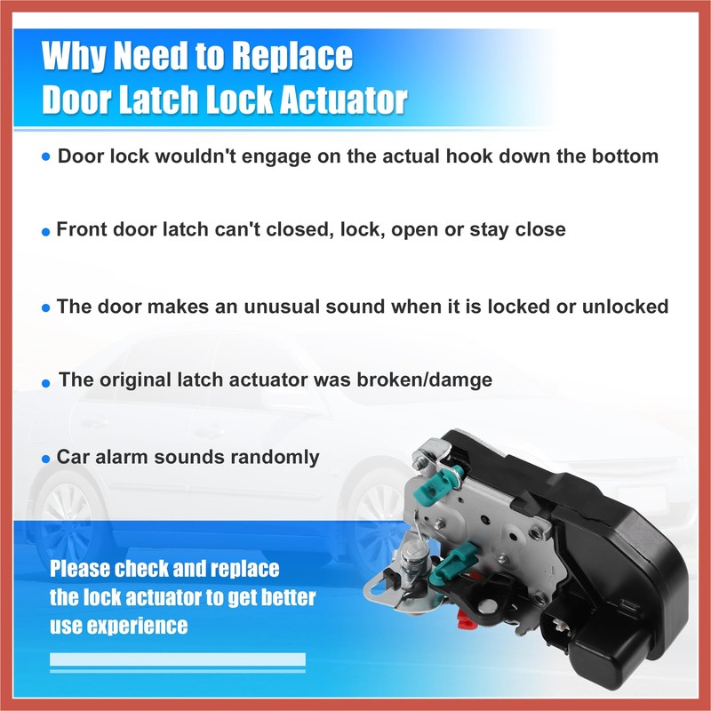 - Automobile Parts: [Replacement Door Latch Actuator] Each door contains its own actuator, if a door on your vehicle will not lock or unlock, a bad actuator is likely the problem. Our product help to restore your car's lock to proper operation. The robust housing is designed to make the actuator more durable and protect it from damage.