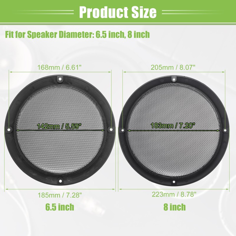 - Universal Fit: 6.5 inch 8 inch Speaker Grills Covers are used for home audio systems, car audio systems, outdoor sound installations and so on. Overall, speaker grille covers find application in different settings to extend the lifespan of speakers and maintain their performance quality.