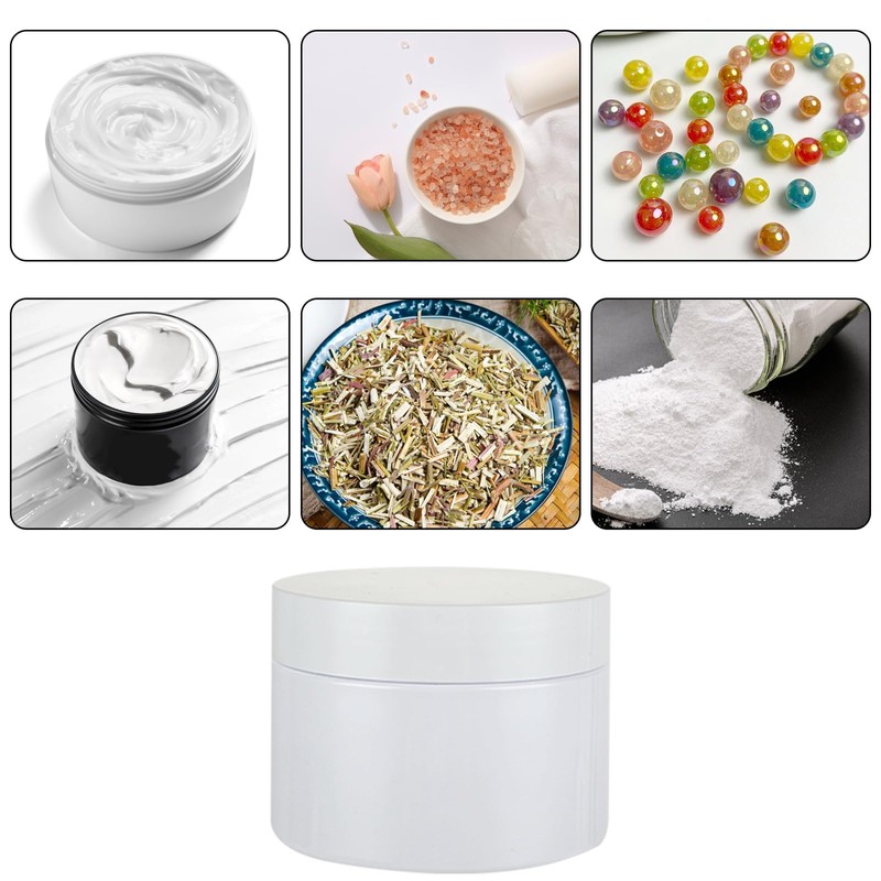 - 【Wide Application】 The round 4-ounce plastic jar can hold not only beauty products such as creams, lotions, sunblocks, body butter, body scrubs, and bath salts, but also other small handicraft items such as jewelry and beads. 4oz Cosmetic jars with labels will effectively block the light, protect the creams in the jars property unchanged. The labels help tag the creams so you can identify it as soon as possible.