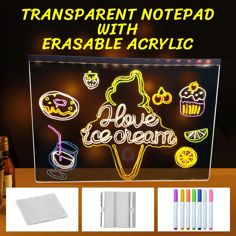 Acryl-LED-Nachrichtenbrett mit 7 Farben, 30 x 20 cm, beleuchtet, trocken abwischbar, beleuchtetes Schreibtisch-Memoboard für Schule, Zuhause, Büro, Café, Kunst, Kritzeleien, DIY-Notizdisplay
