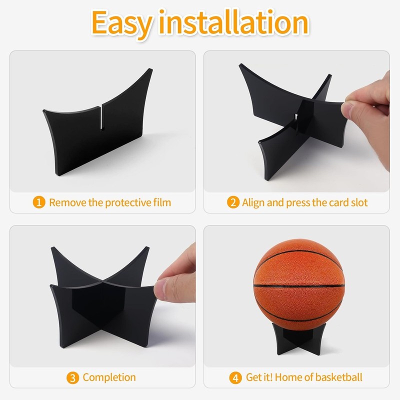 • Easy to Install: Take out 2 corresponding acrylic plates and find the gap between them. Combine 2 acrylic plates crosswise. Get your perfect ball holder ready to use! (Note: Remember remove the sately film before connect crosswise).