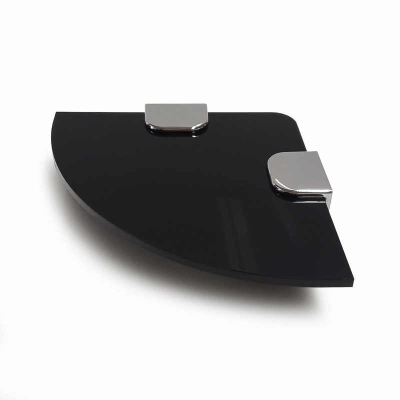 - Minimalist modern 150mm corner acrylic safety shelf in Black with wall fixings included.