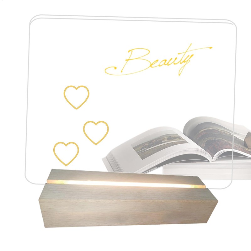 Acrylic Dry Erase Board with Light | LED Message Board with Wooden Base - Writing Board, Light up Illuminated Drawing Board, Memo Board with Light for Kids Adults