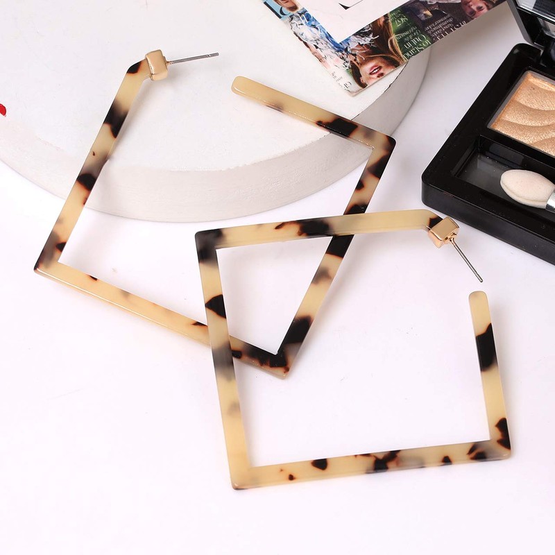 - 【FASHION DESIGN 】—Square acrylic hoop earring made from light weight multi-colored acetate.Square silhouette,Marbled Floral and Leopard Tortoise shell design. Light-weight earrings. these acrylic earrings are the perfect statement earrings for day and night wear,Swinging between fun and sophisticated, these add a splash of color to any outfit and look fantastic on.