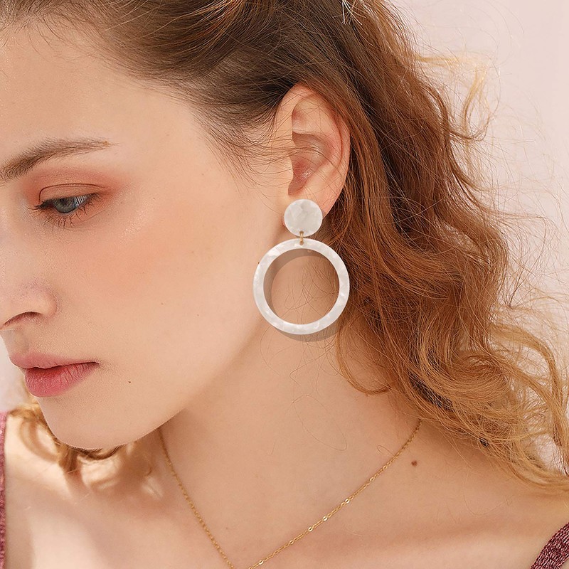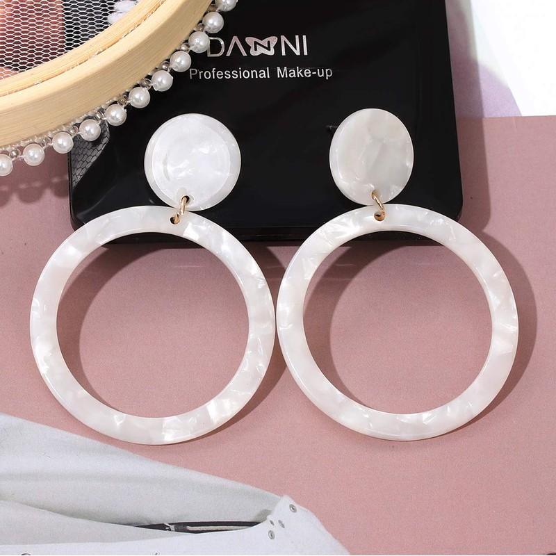 Acrylic for Women Geometry Resin Drop Dangle Earrings Bohemia Tortoise Shell Hoop Earrings Mottled Statement Stud Earrings Fashion Jewelry (White)