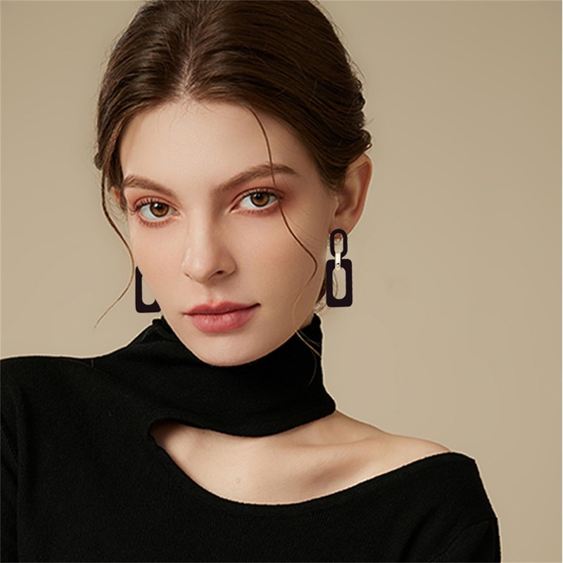 Acrylic Geometric Dangle Earring for Women Boho Lightweight Earring Cute Candy Trendy Chunky Earrings Retro Acrylic Square Statement Drop Earrings (Black Square)