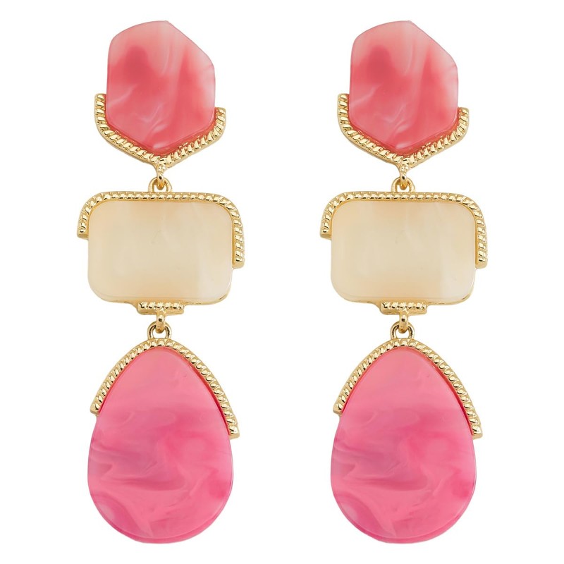 Acrylic Geometric Earrings Multilayer Resin Earrings Long Drop Dangle Earrings Acetate Tassel Earrings Long Pink Cute Jewelry Design for Women (Pink)