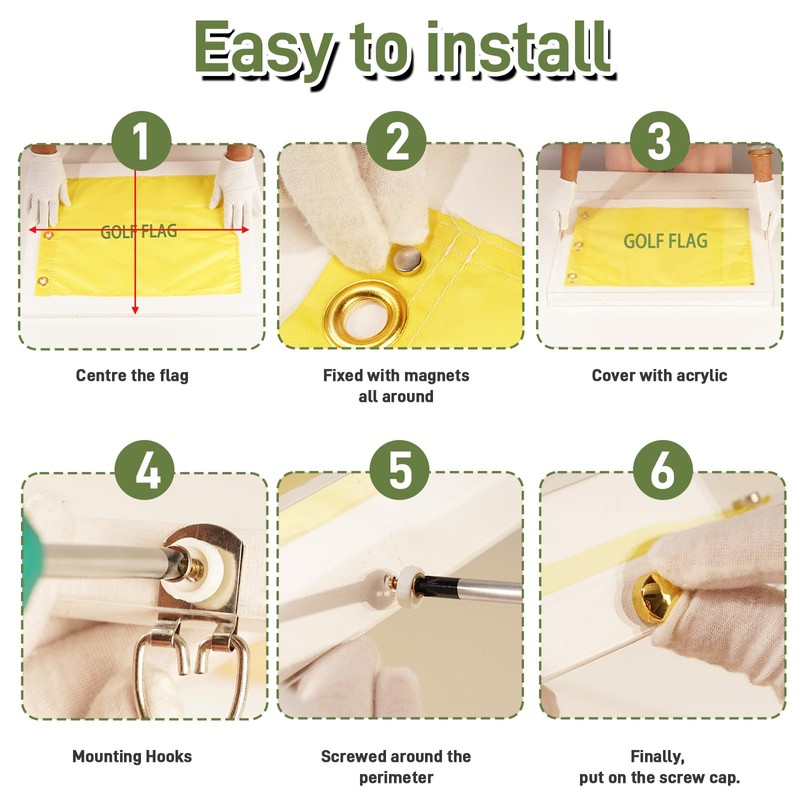 - Magnetic Fixation: The clear golf flag holder organizer showcase is lined with high-grade oilcloth and solid wood brackets. When in use, simply fix multiple strong magnets inside and outside the flag to display your collection seamlessly, supporting both desktop and wall-mounted display methods.