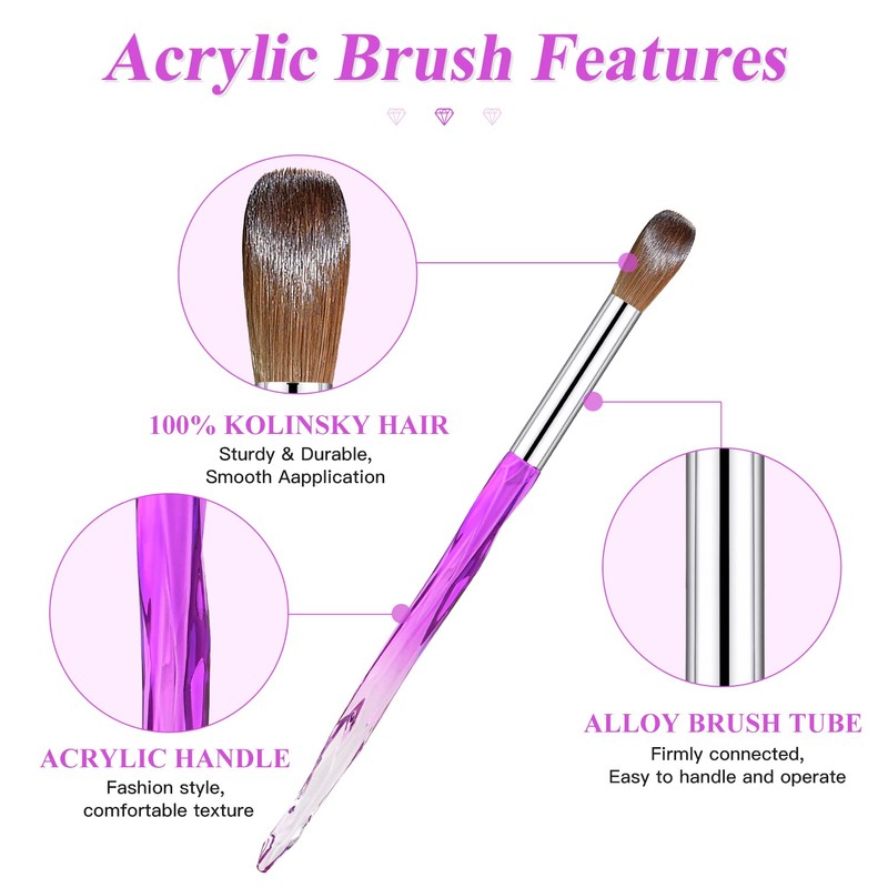 - 【Superior Quality】Our acrylic nail brush is made of 100% pure kolinsky hair, which is smooth, soft and flexible. Ensure you to apply acrylic application consistantly and smoothly. Each kolinsky acrylic brush is handmade by our experienced teacher who is with strict requirement on quality control.